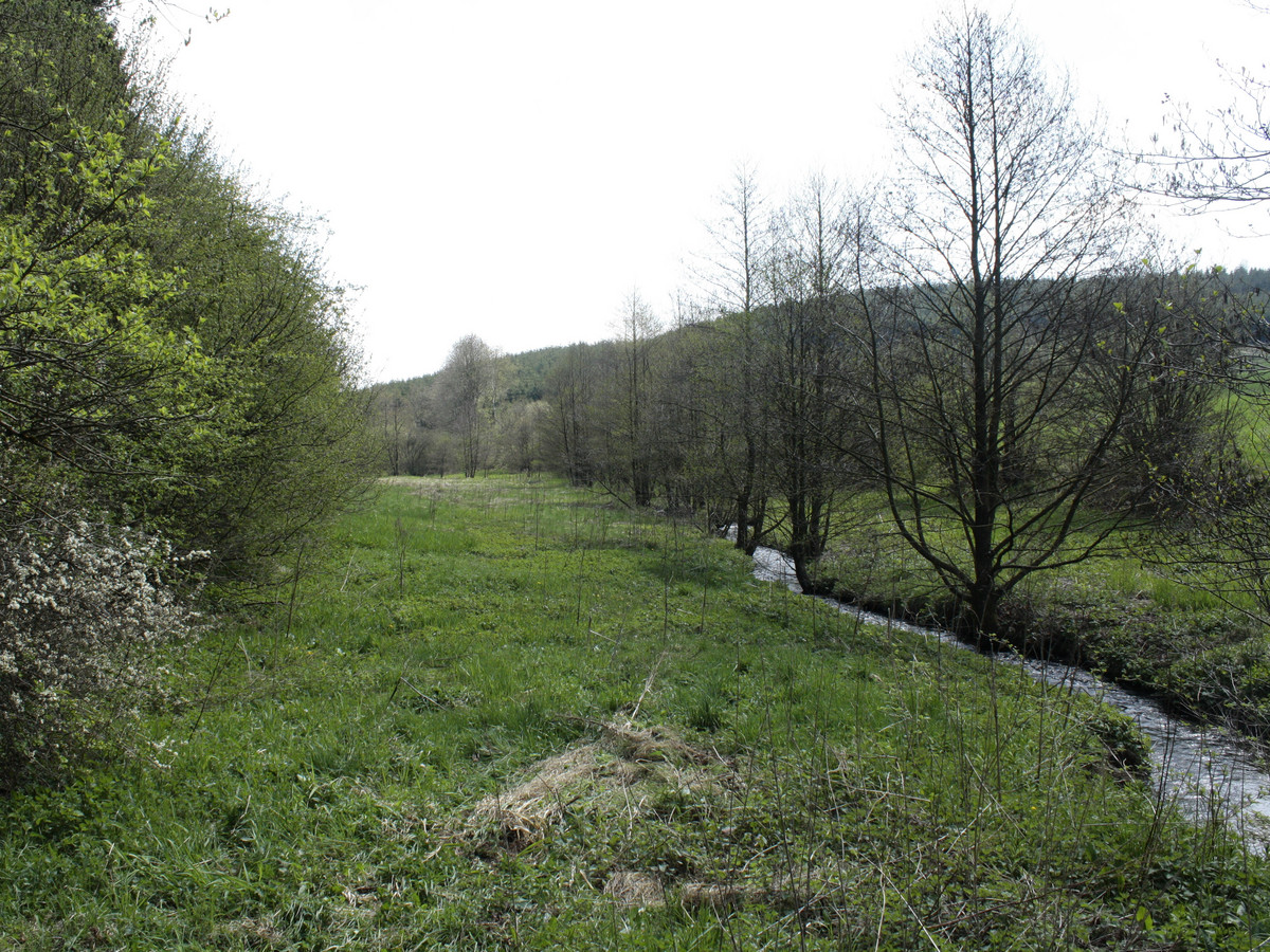 - die typische Vegetation der ehemals als Mähwiese genutzten Talsohle wird durch die Anwesenheit der Spitzblütigen Binse und andere kleinwüchsige Arten gekennzeichnet, darunter mehrere Orchideen. Als Folge der jahrzehntelangen Brache der Feuchtwiese hat sich jedoch stellenweise eine Hochstaudenvegetation aus Mädesüß, Rohrglanzgras und Engelwurz ausgebreitet