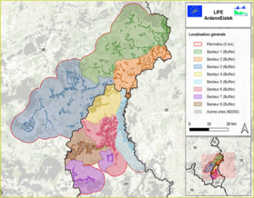 Natagora und Natagora/BNVS sowie zwei luxemburgische Partner – die Fondation Hëllef fir d’Natur und Natur&Ëmwelt – werden gemeinsam an diesem Projekt arbeiten. Die EU finanziert 67% der Kosten, die Umweltministerien der Länder einen Großteil des Restbudgets. Das Projektgebiet umfasst Teile Eifel, der Hohen Ardennen und des luxemburgischen Éislek. Die untenstehende Karte zeigt diese Aktionsgebiete.